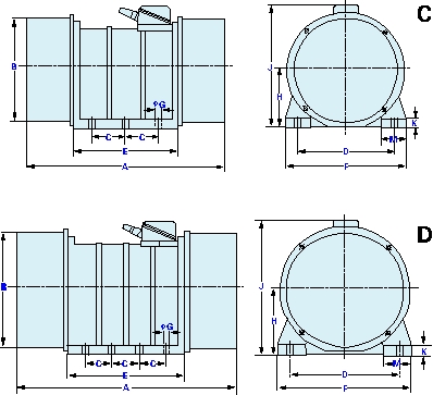 XVMA系列振動電機(jī)外形尺寸圖