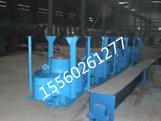 電動機經(jīng)聯(lián)軸器通過減速機帶動圓盤。圓盤轉(zhuǎn)動時,料倉內(nèi)的物料隨著圓盤一起移動,并向出料口的一方移動,經(jīng)閘門或刮刀排出物料。排出量的大小可用刮刀裝置或閘門來調(diào)節(jié)。圓盤給料機套筒一般有蝸牛式或直筒式兩種,蝸牛式套筒采用閘門排料,具有下料均勻、準確,對溶劑、反礦粉等配料適合。直筒式套筒采用刮刀排料,堵料現(xiàn)象較蝸牛式套筒輕,但下料量波動大。當(dāng)精礦粉活粉礦用量較大時,宜用帶活動刮刀套筒。反之,熔劑或燃料用料量小時,宜采用閘門式套筒。