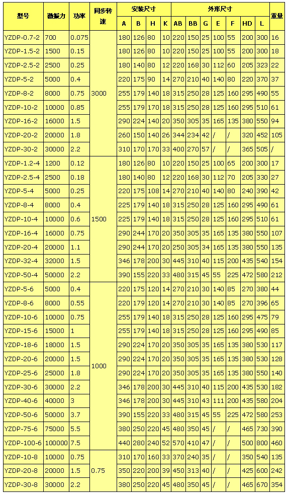 YZDP系列振動電機技術參數(shù)、外形尺寸