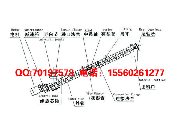 移動式螺旋輸送機是利用旋轉的螺旋葉片將物料推移而進行螺旋輸送機輸送,使物料不與螺旋輸送機葉片一起旋轉的力是物料自身重量和螺旋輸送機機殼對物料的摩擦阻力,螺旋輸送機旋轉軸上焊的螺旋葉片,葉片的面型根據(jù)輸送物料的不同有實體面型、帶式面型、葉片面型等型式。螺旋輸送機的螺旋軸在物料運動方向的終端有止推軸承以隨物料給螺旋的軸向反力,在機長較長時,應加中間吊掛軸承。