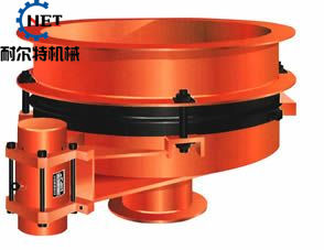將振動(dòng)電機(jī)接通電源,振動(dòng)電機(jī)起振。其產(chǎn)生的激振力使給料斗下體在水平方向產(chǎn)生強(qiáng)烈的振動(dòng),此振動(dòng)通過(guò)錐面或球面活化器將水平激振力分解為法向力和切向力,法向力呈放射狀傳遞到物料深處,切向力使物料受剪,從而消除倉(cāng)內(nèi)物料的起拱,使物料像流水一樣從出料口排出。切斷電源,振動(dòng)電機(jī)停振,排料可停止。