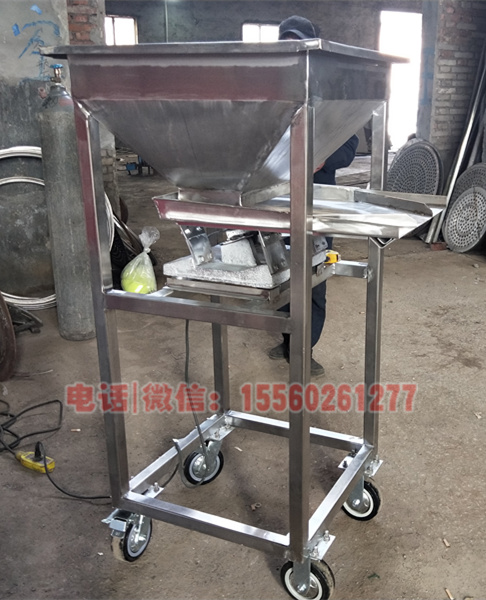 張經(jīng)理訂購的不銹鋼座式給料機(jī)加料槽,設(shè)備總高度為1420mm,寬600mm,給料機(jī)料槽尺寸為630*500mm。