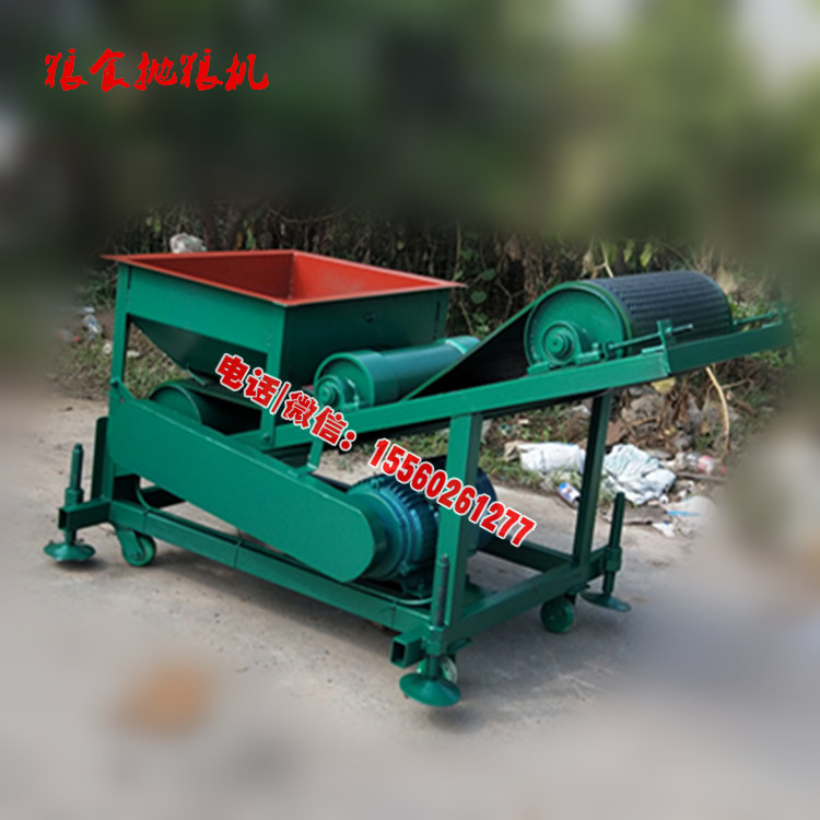 揚(yáng)場(chǎng)機(jī)由大架、進(jìn)料斗、電機(jī)、支撐絲桿、傳動(dòng)輪、拋糧帶、壓帶輪等部件構(gòu)成,用于玉米、小麥、蕎麥、稻種、黃豆、綠豆等顆粒狀物料的除雜,糧食谷物進(jìn)入料斗后在高速運(yùn)轉(zhuǎn)下迫使物料向前上方運(yùn)動(dòng)由皮帶送出,皮帶為特殊加工的多坑圓點(diǎn)輸送帶,具有定向作用,便于糧食的收集,根據(jù)物料及雜質(zhì)比重的不同,分別將其堆成堆。