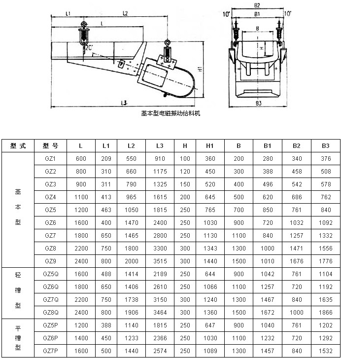 GZ電磁振動(dòng)給料機(jī)技術(shù)參數(shù)