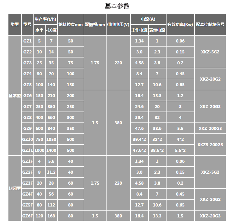 電磁振動給料機(jī)技術(shù)參數(shù)