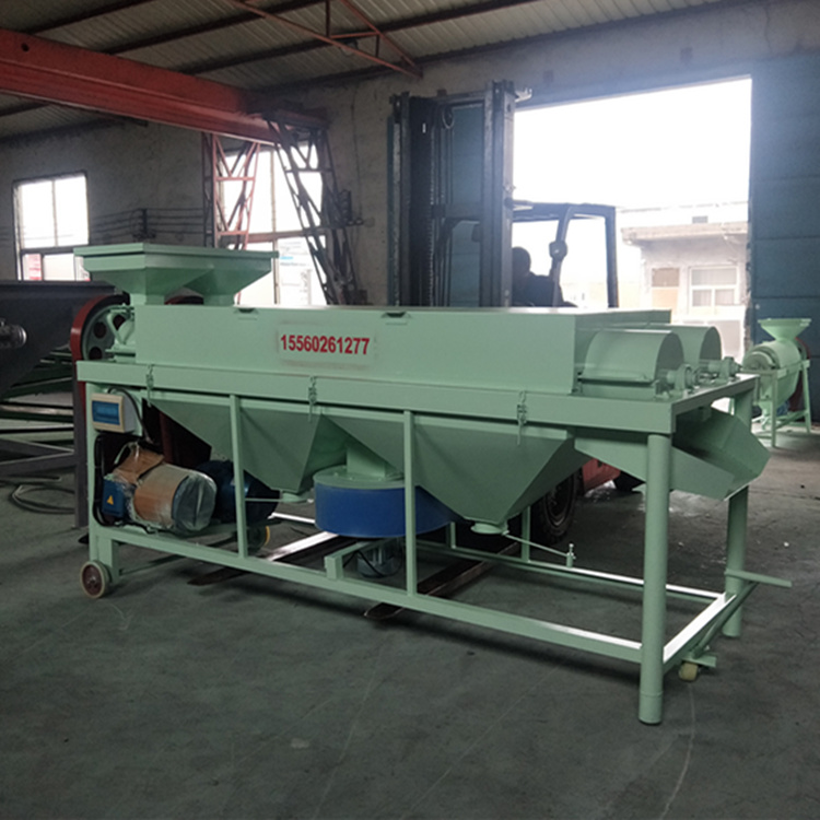 水稻打芒機工作時只需把物料投放到進料斗,利用螺旋軸轉動把物料輸送到箱體內(nèi),物料在流態(tài)化運動過程中,被螺旋軸上的棉布推送到篩網(wǎng)上,物料在篩網(wǎng)和棉布之間摩擦揉搓,把物料表面的泥點霉點以及芒刺摩擦掉,部分細小的雜質會通過雜料口篩出,粉塵和土通過抽塵風機抽出。